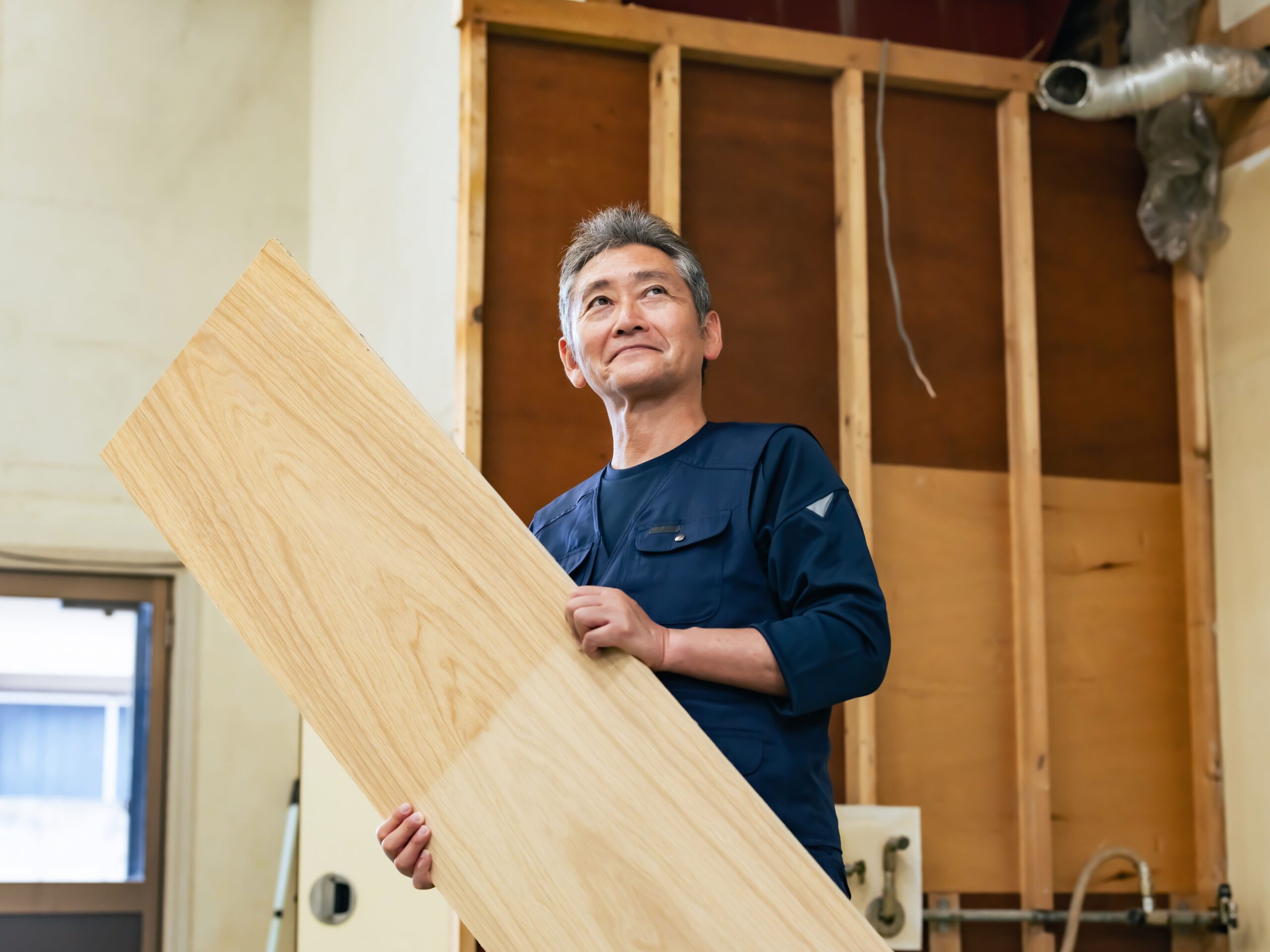 切断や細かな造作も簡単。配線溝加工等もカッターで可能です。また、表面はPET不織布なので接着剤がよくなじみます。切り粉が出ないのもうれしいポイント。使用する部屋で切断ができるので工事中の移動が少なくて済みます。